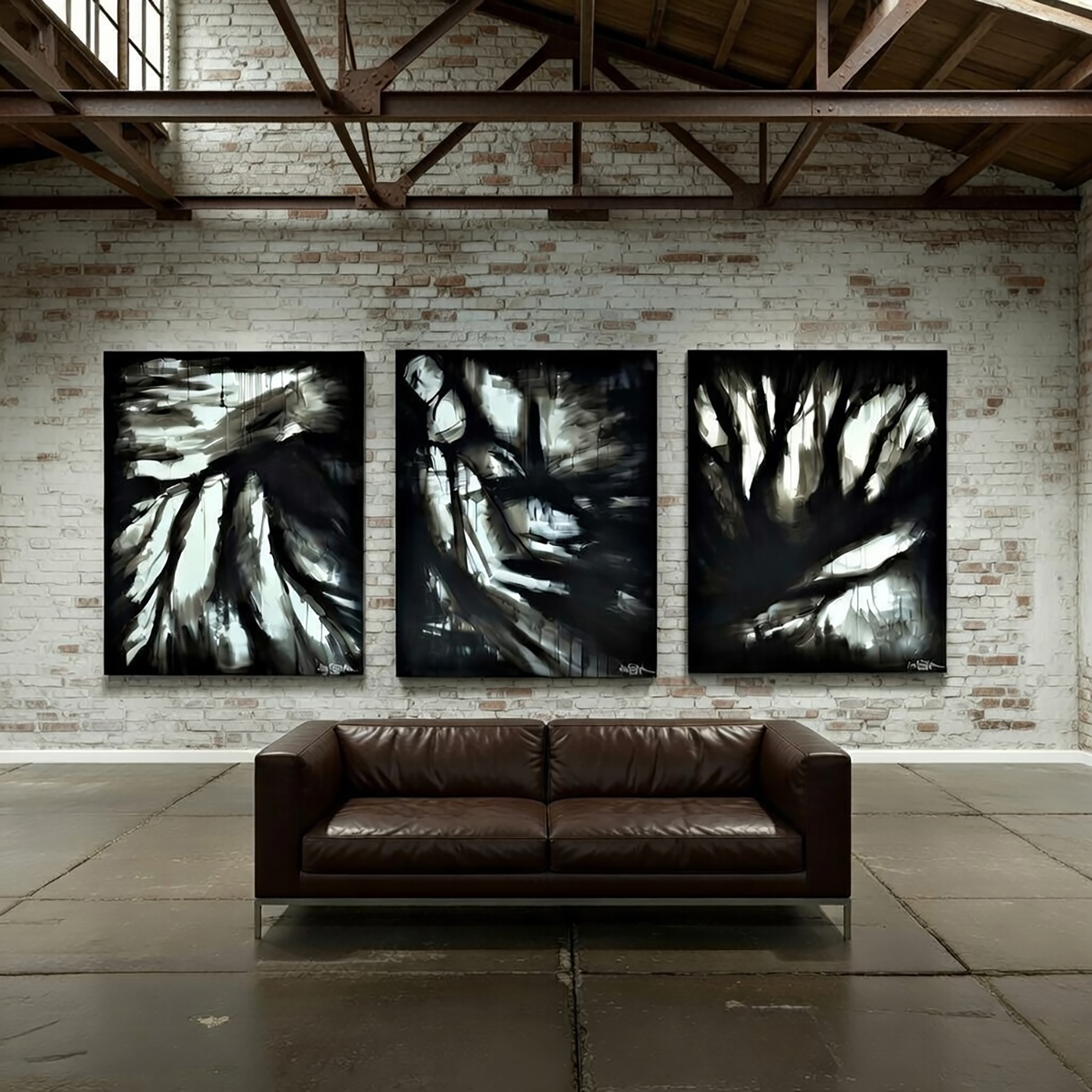 THERE IS BEAUTY BENEATH THE SURFACE. triptych 2024. 380×150 cm / 149,6×59,1 in. oil and acrylic on canvas