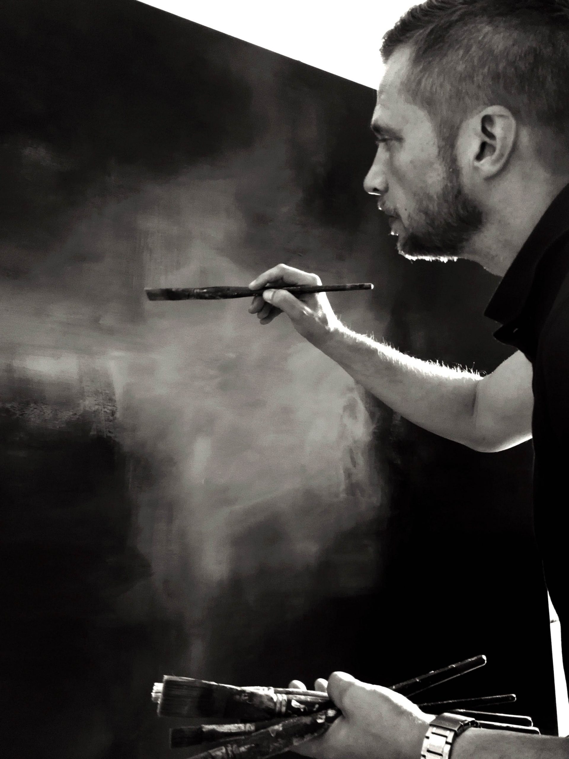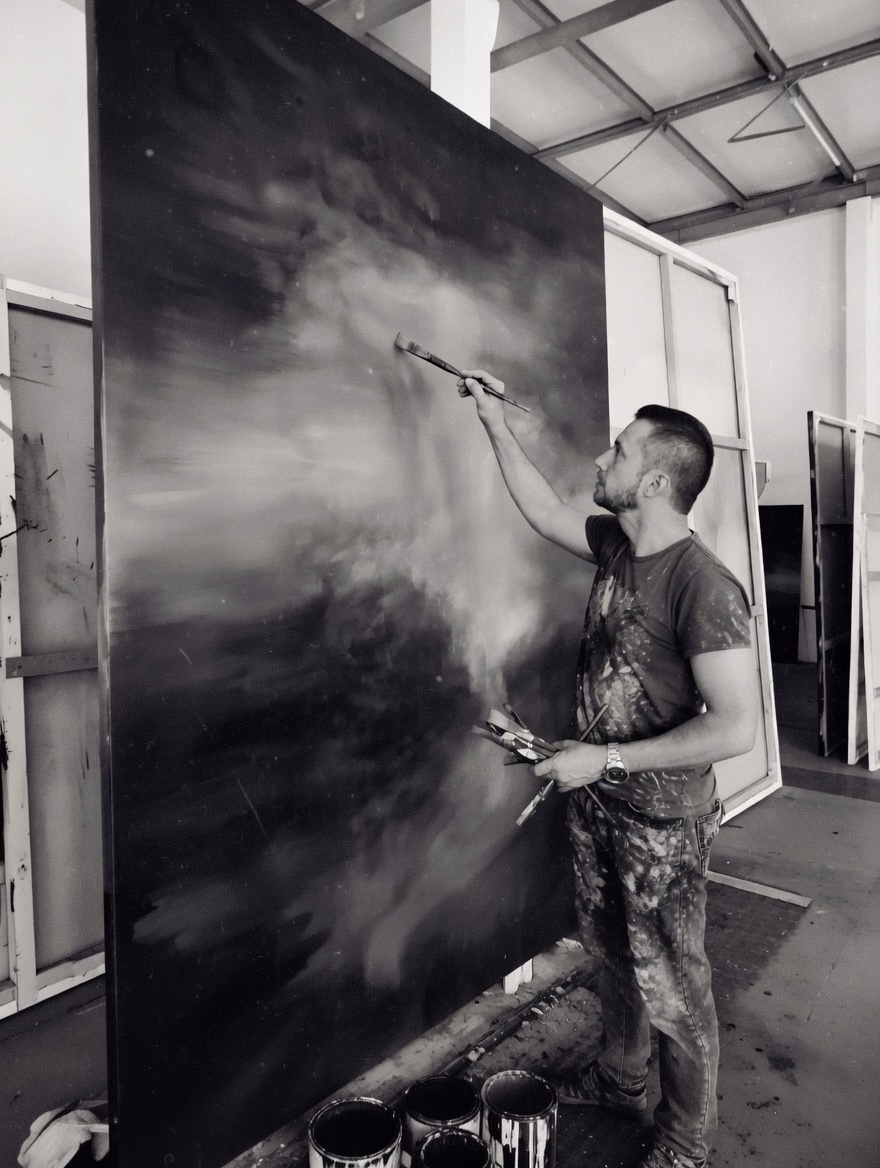 Occasionally, on warm and dry days, I work outdoors en plein air. These moments serve as observation and inspiration, as studies of light and atmosphere rather than final statements. The completed works, however, are conceived and realized in the studio.