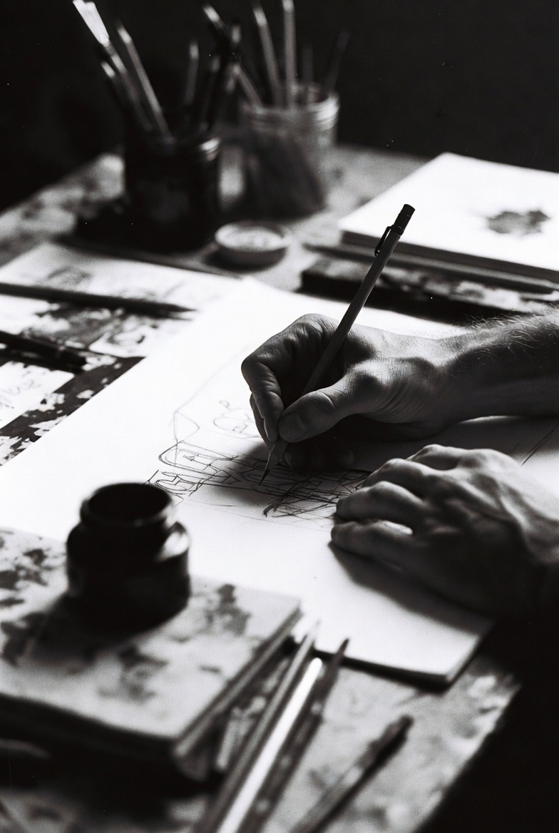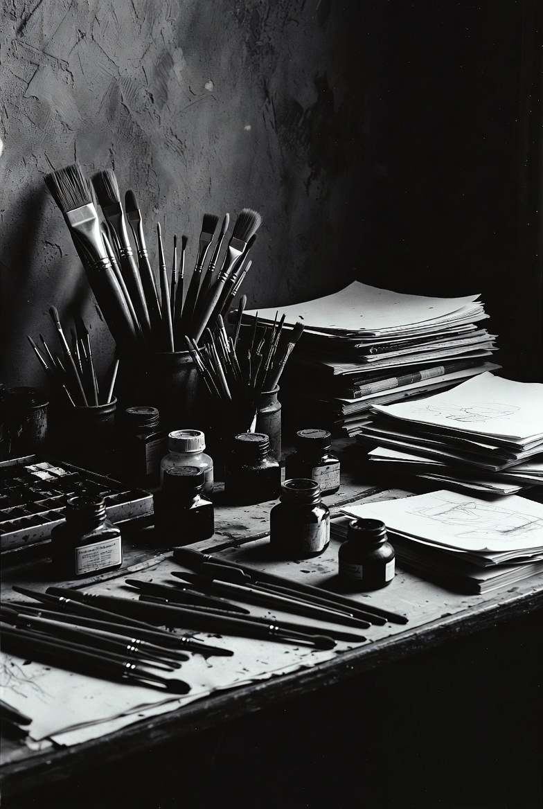 My studio is the center of my artistic practice. It is where ideas are tested, refined, and brought to completion. The controlled conditions of the space – light, order, and concentration – are essential to my way of working.